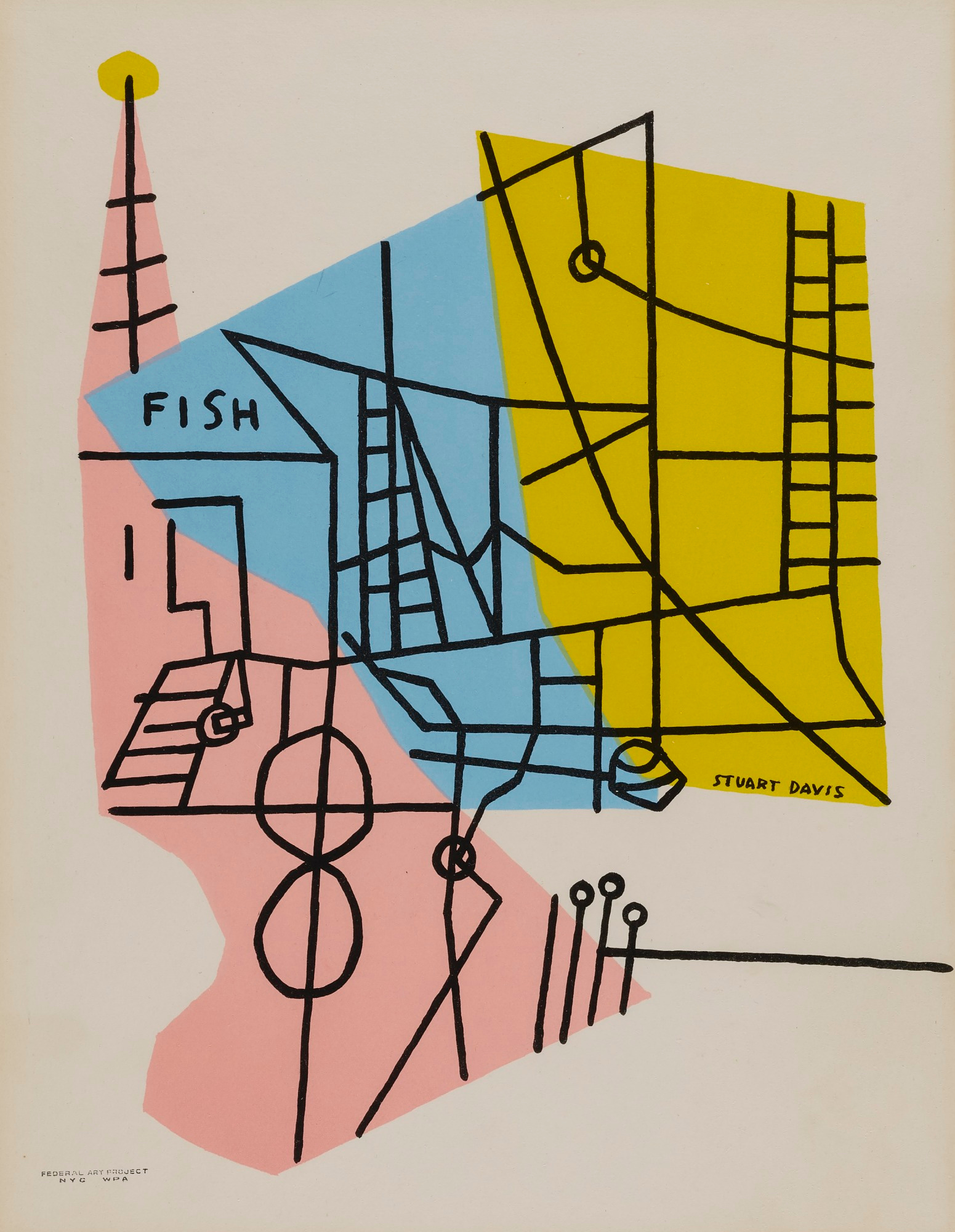 Take a closer look. Is this a series of shapes and colors, or an illustration of a specific scene/object? Which clues are the most persuasive to you? What would you name the different shapes or objects? Is there any 3D aspect to this image? How do the pieces connect to each other, or not? What themes or similarities do you observe? How would this piece appear different if there we no lines, just shapes and colors — where would you eyes travel in the piece? Do you think the artist did other illustrations and work in preparation for this image, or was it spontaneous? What is one adjective you might use to describe the piece?
